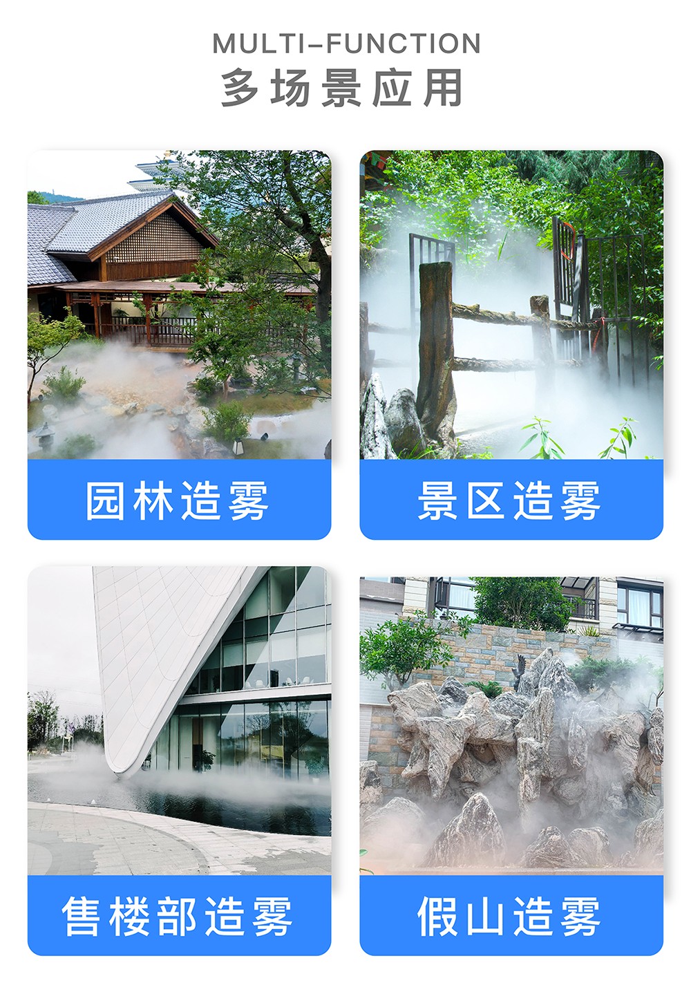 四川景程雾森,为您提供专业的人造雾设备,雾森解决方案,水景喷泉安装施工,满足您的造景、除尘、降温、消毒需求,帮您解决造雾难题。我们致力于打造,更有保障的高压喷雾工程。如在业务方面有任何疑问,欢迎咨询:028-6495-0543。